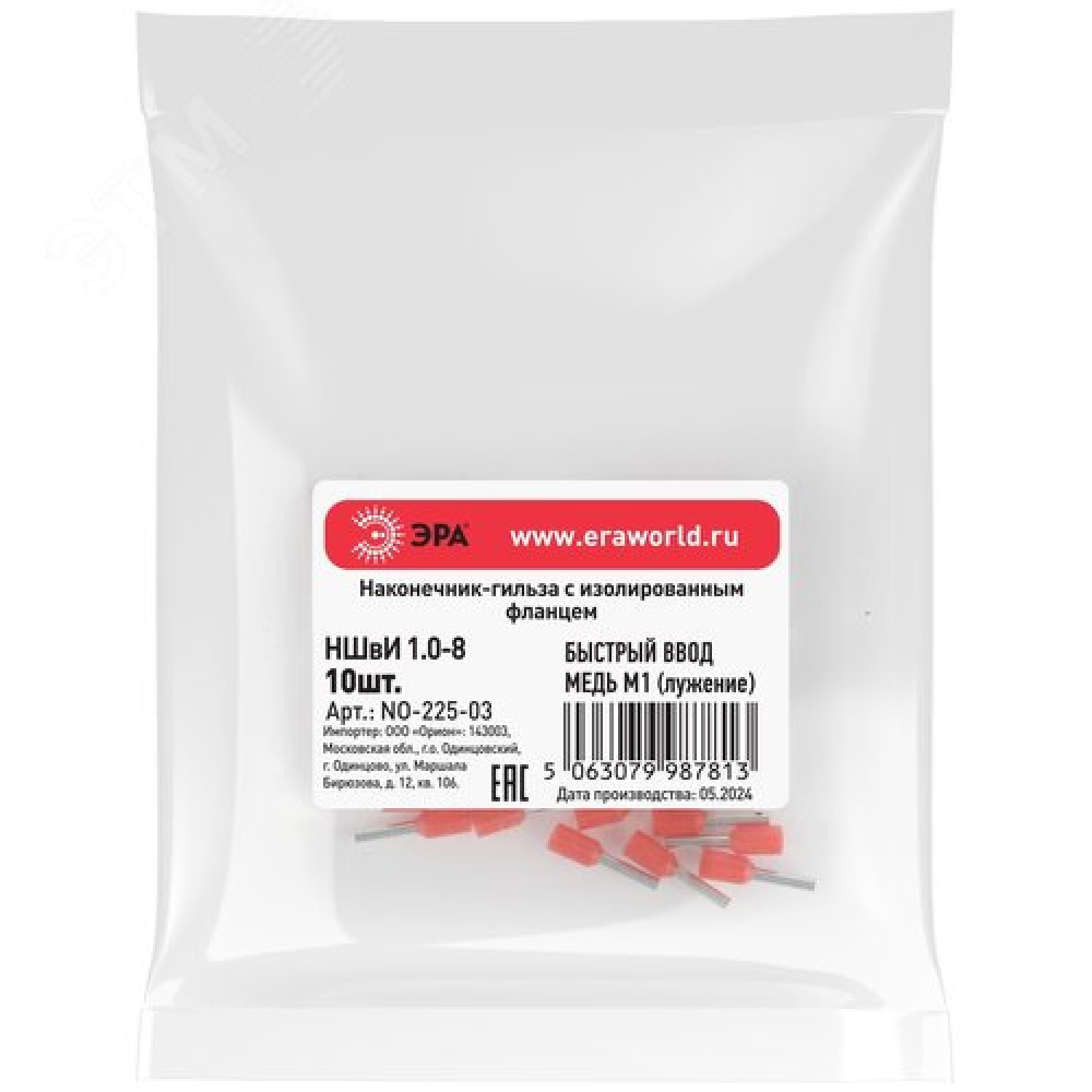 Технические характеристики Наконечник-гильза с изолированным фланцем (упаковка 10 шт.) NO-225-03 НШвИ 1,0-8