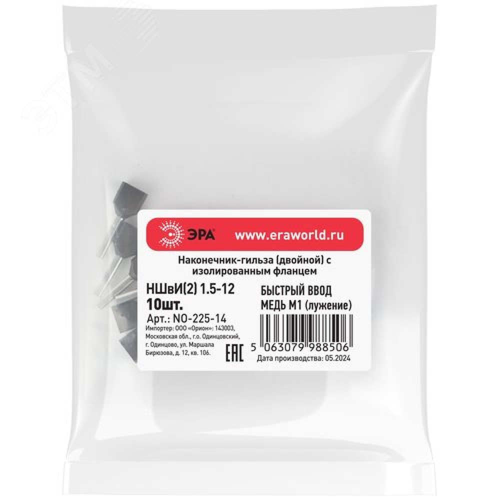 Технические характеристики Наконечник-гильза с изолированным фланцем (упаковка 10 шт.) NO-225-14 (двойной) НШвИ(2) 1,5-12