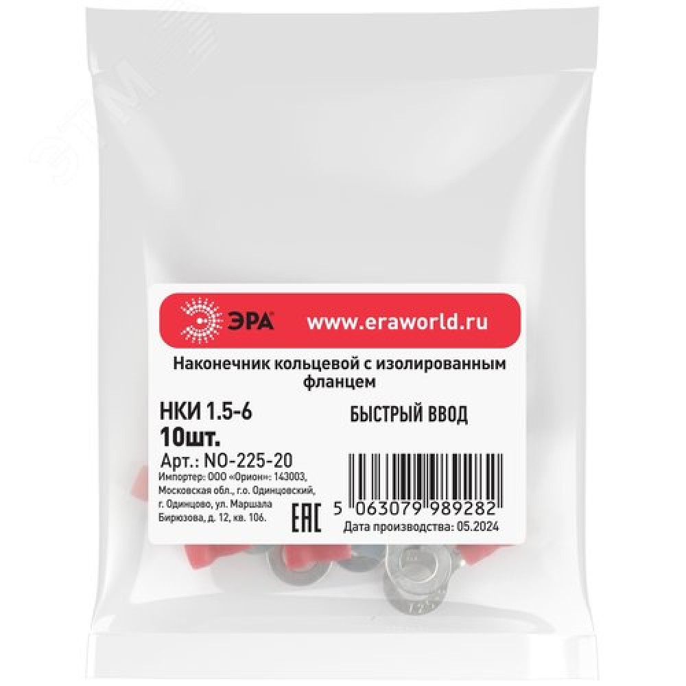Технические характеристики Наконечник-гильза с изолированным фланцем (упаковка 10 шт.) NO-225-20 кольцевой НКИ 1.5-6