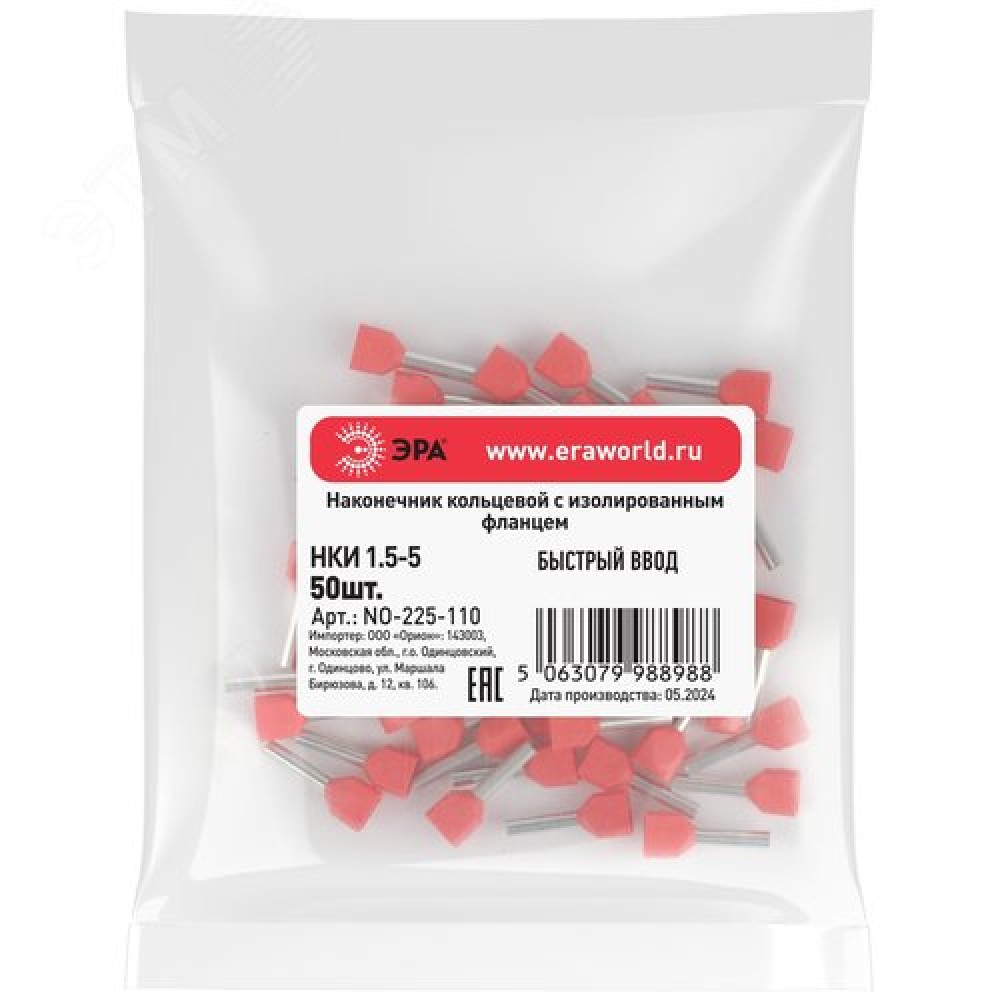 Технические характеристики Наконечник-гильза с изолированным фланцем (упаковка 50 шт.) NO-225-100 (двойной) НШвИ(2) 1,0-10
