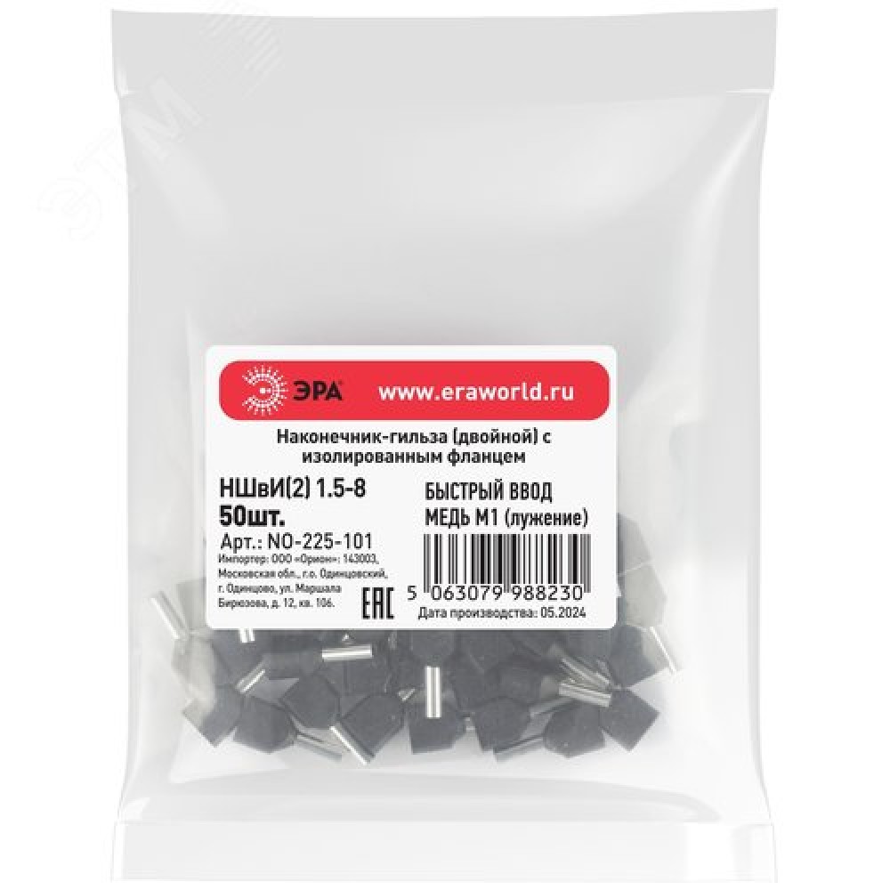 Технические характеристики Наконечник-гильза с изолированным фланцем (упаковка 50 шт.) NO-225-101 (двойной) НШвИ(2) 1,5-8