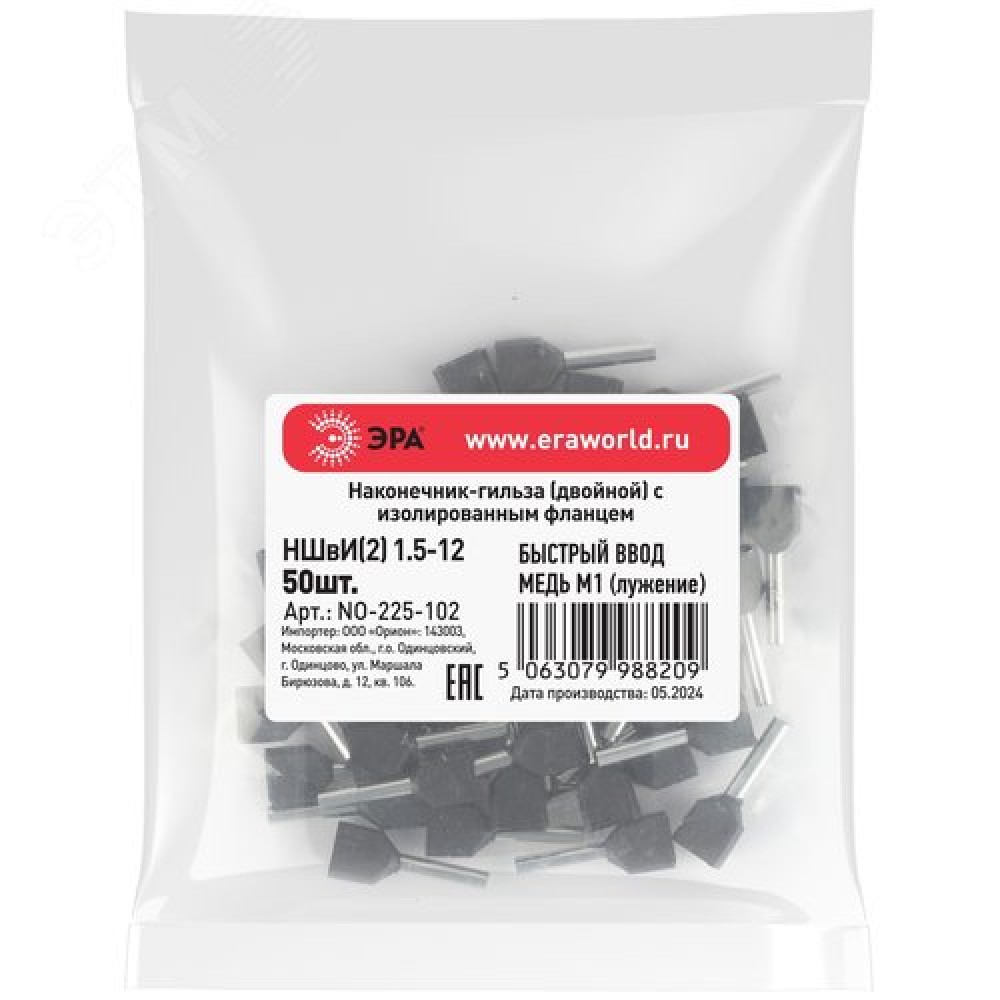 Технические характеристики Наконечник-гильза с изолированным фланцем (упаковка 50 шт.) NO-225-102 (двойной) НШвИ(2) 1,5-12