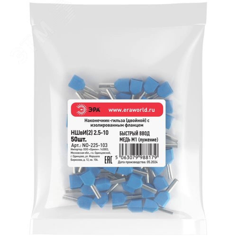 Технические характеристики Наконечник-гильза с изолированным фланцем (упаковка 50 шт.) NO-225-103 (двойной) НШвИ(2) 2,5-10