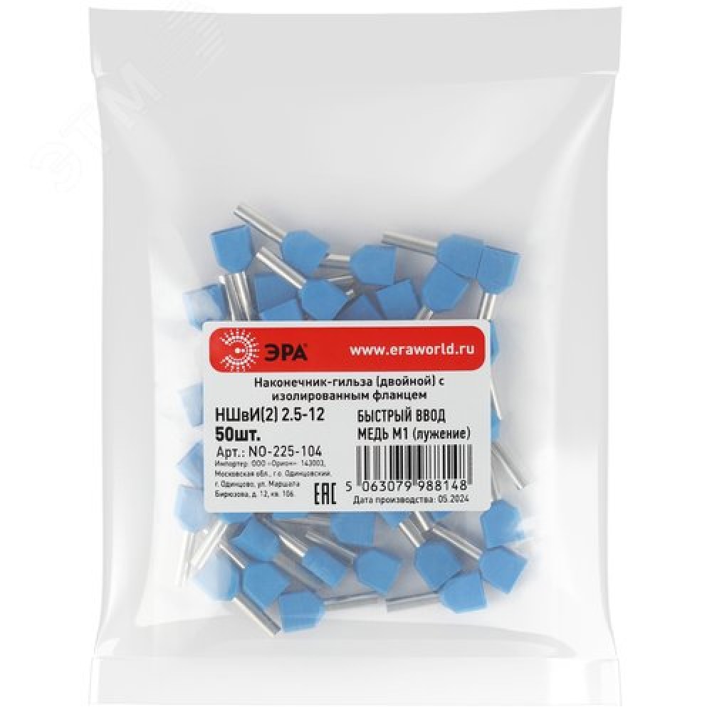 Технические характеристики Наконечник-гильза с изолированным фланцем (упаковка 50 шт.) NO-225-104 (двойной) НШвИ(2) 2,5-12