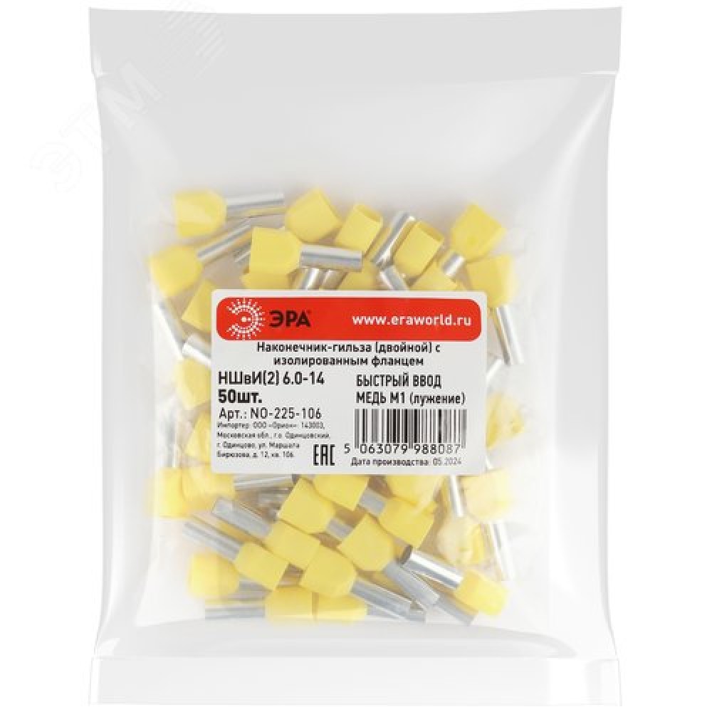Наконечник-гильза с изолированным фланцем (упаковка 50 шт.) NO-225-106 (двойной) НШвИ(2) 6,0-14