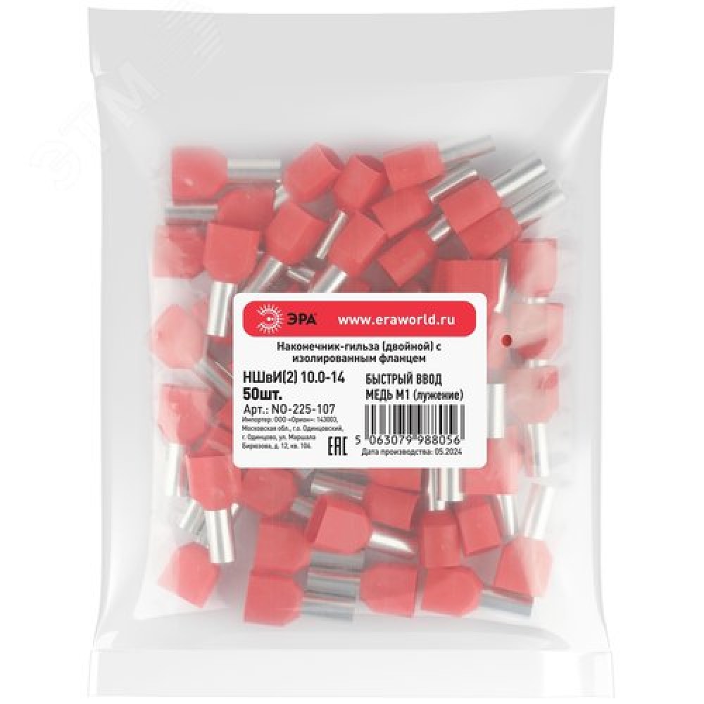 Технические характеристики Наконечник-гильза с изолированным фланцем (упаковка 50 шт.) NO-225-107 (двойной) НШвИ(2) 10,0-14