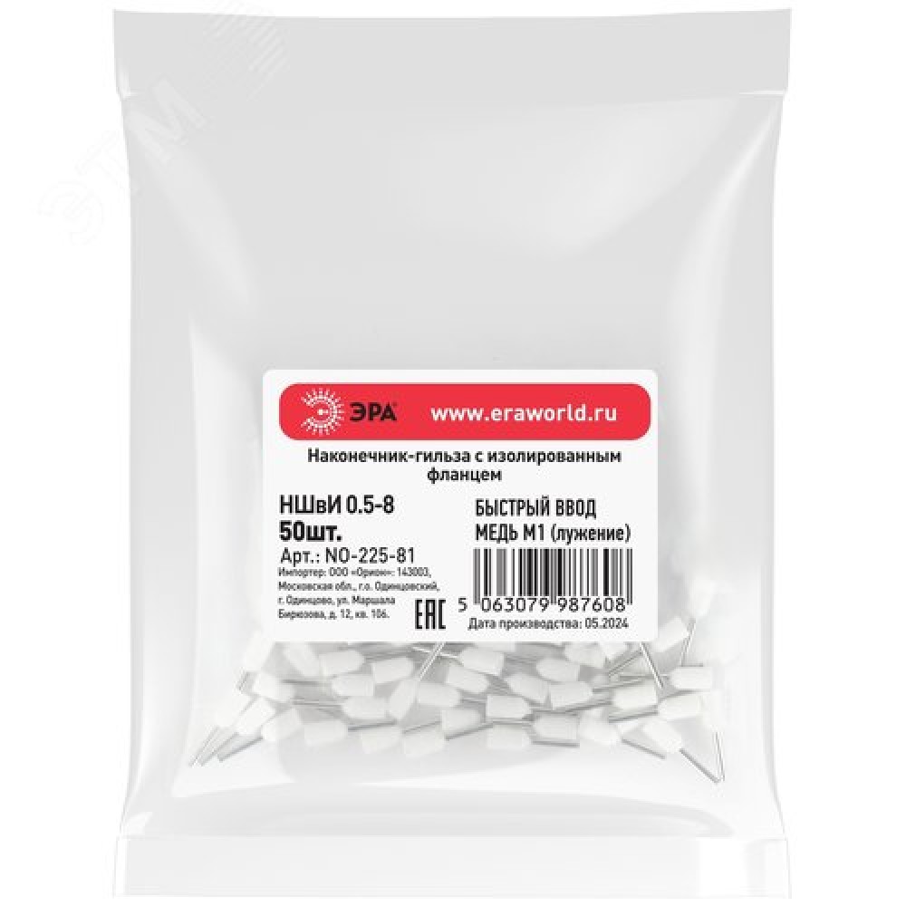Наконечник-гильза с изолированным фланцем (упаковка 50 шт.) NO-225-81 НШвИ 0,5-8