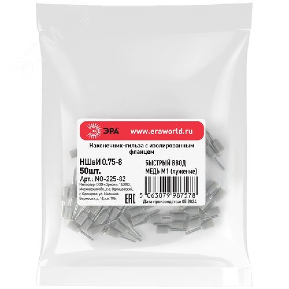 На складе Код товара: etm-2203109 Наконечник-гильза с изолированным фланцем (упаковка 50 шт.) NO-225-81 НШвИ 0,5-8
