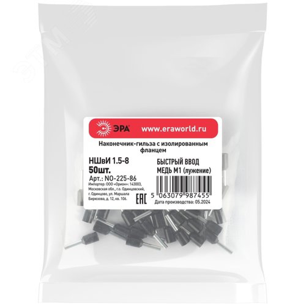 Технические характеристики Наконечник-гильза с изолированным фланцем (упаковка 50 шт.) NO-225-86 НШвИ 1,5-8