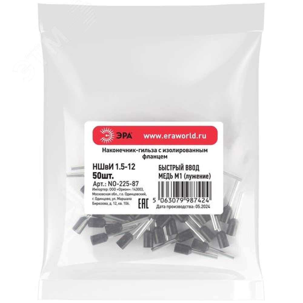 • Наконечник-гильза с изолированным фланцем (упаковка 50 шт.) NO-225-87 НШвИ 1,5-12