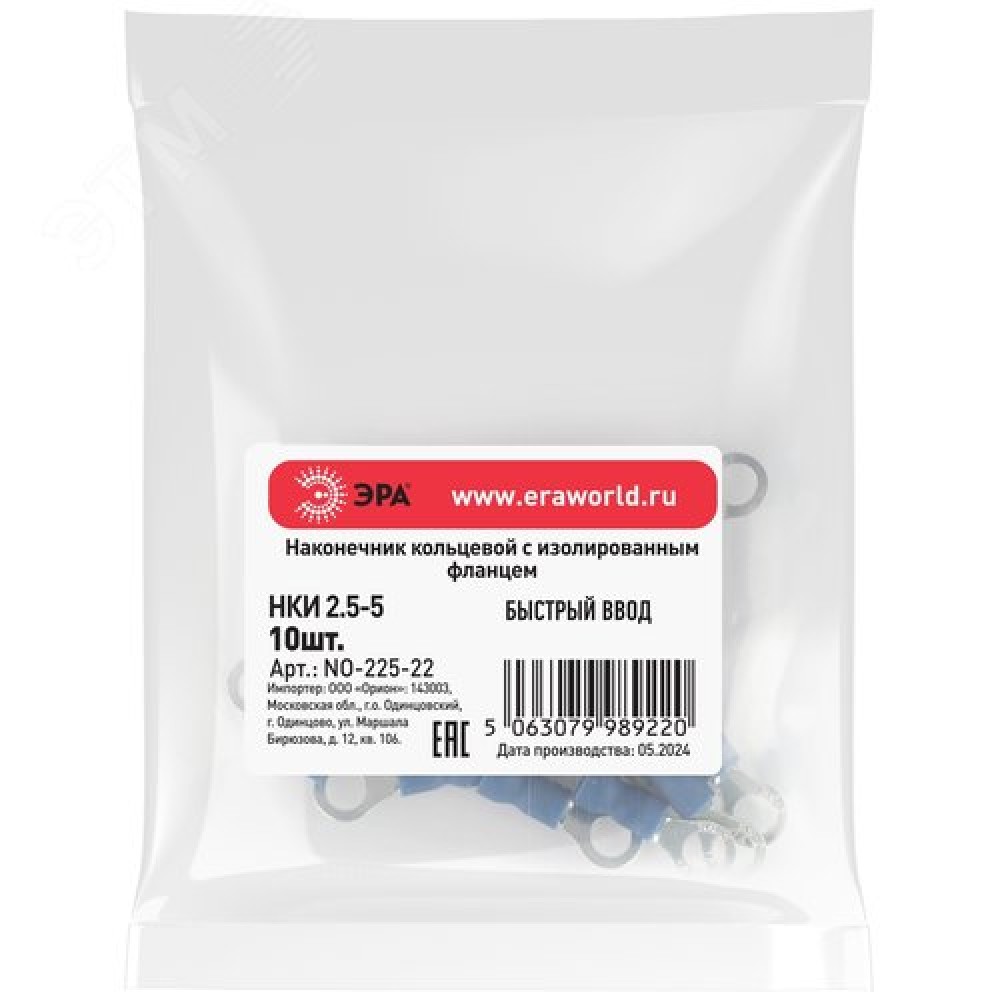 Наконечник кольцевой с изолированным фланцем (упаковка 10 шт.) NO-225-22 НКИ 2.5-5