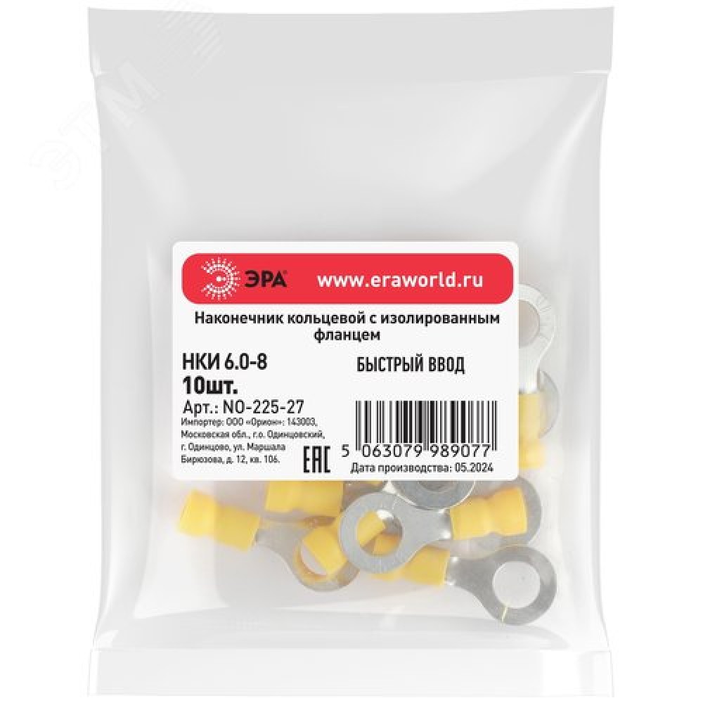 Технические характеристики Наконечник кольцевой с изолированным фланцем (упаковка 10 шт.) NO-225-27 НКИ 6.0-8