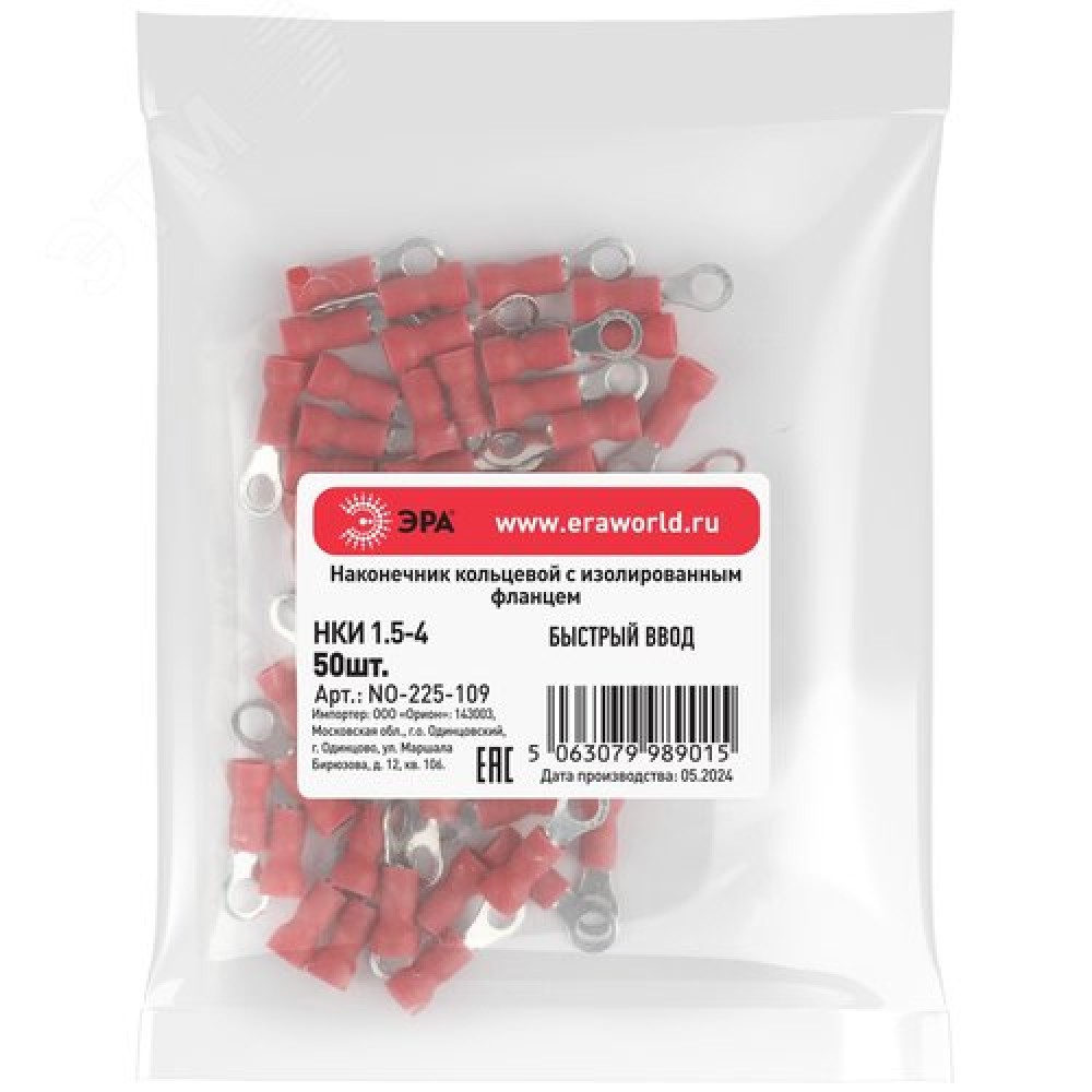 Технические характеристики Наконечник кольцевой с изолированным фланцем (упаковка 50 шт.) NO-225-109 НКИ 1.5-4