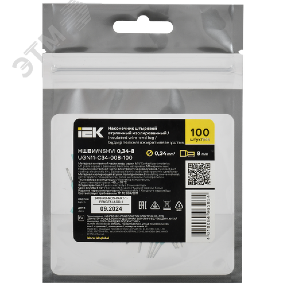 Наконечник НШВИ 0,34-8 бирюзовый (100шт/упак) IEK 0 98 ₽