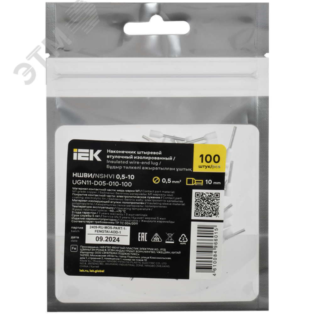 Технические характеристики Наконечник НШВИ 0,5-10 белый (100шт/упак) IEK