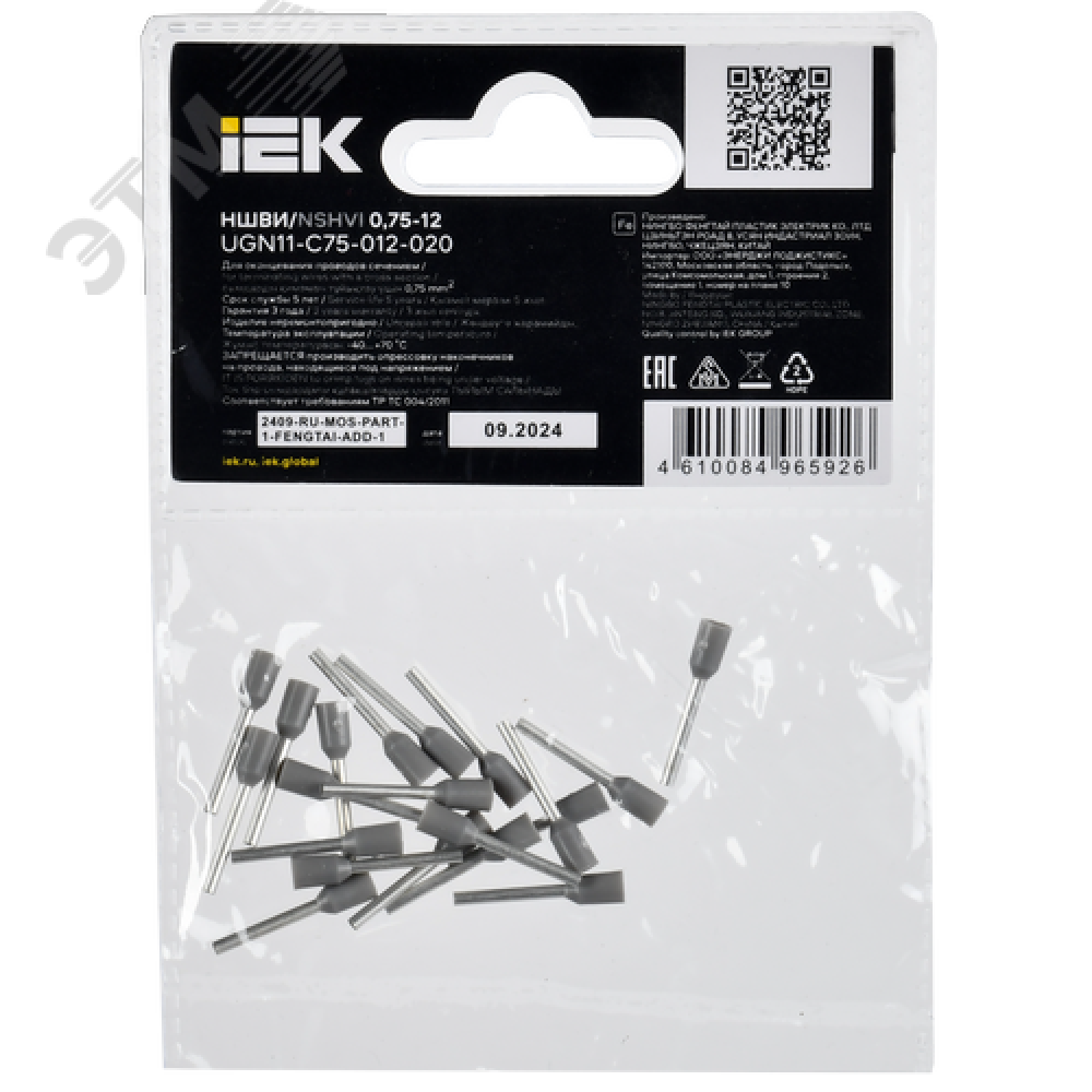 • Наконечник НШВИ 0,75-12 серый (20шт/упак) IEK