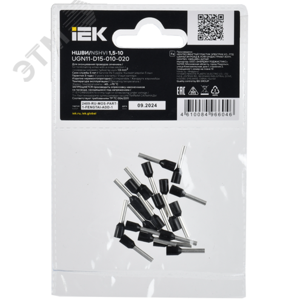 Технические характеристики Наконечник НШВИ 1,5-10 черный (20шт/упак) IEK