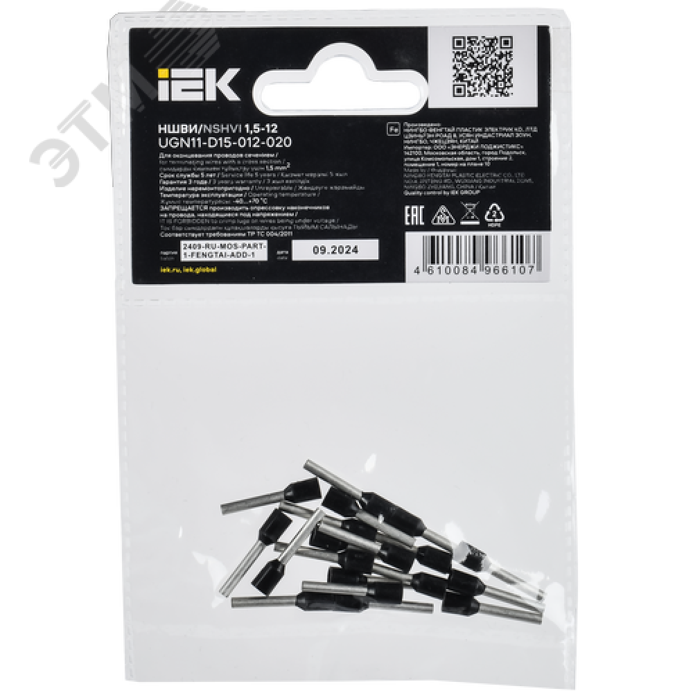 Технические характеристики Наконечник НШВИ 1,5-12 черный (20шт/упак) IEK