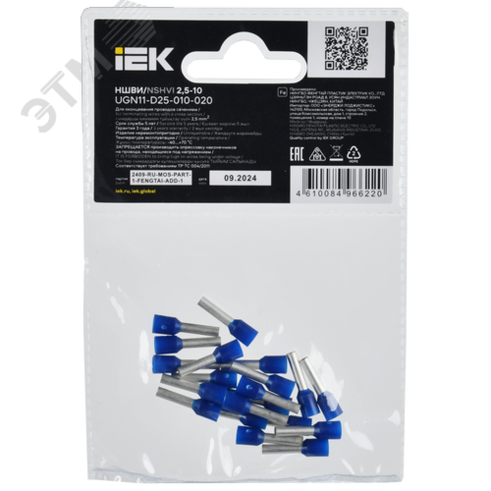 Технические характеристики Наконечник НШВИ 2,5-10 темно-синий (20шт/упак) IEK