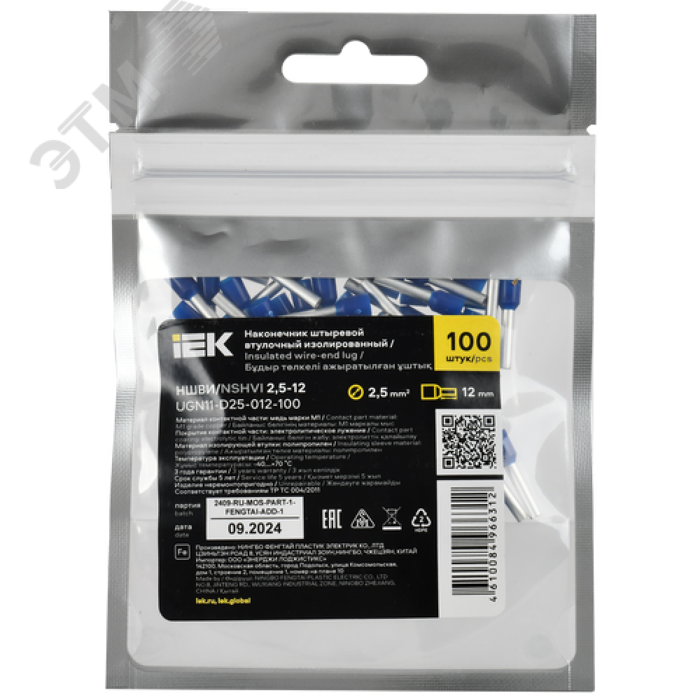 Технические характеристики Наконечник НШВИ 2,5-12 темно-синий (100шт/упак) IEK