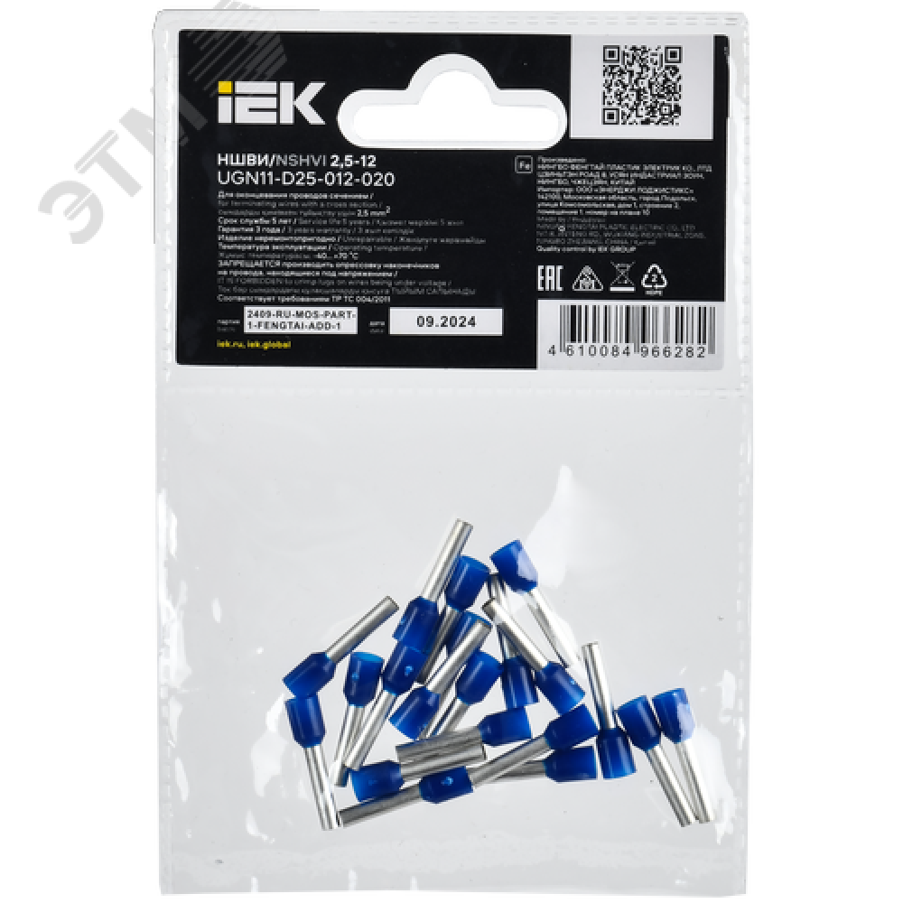 Технические характеристики Наконечник НШВИ 2,5-12 темно-синий (20шт/упак) IEK