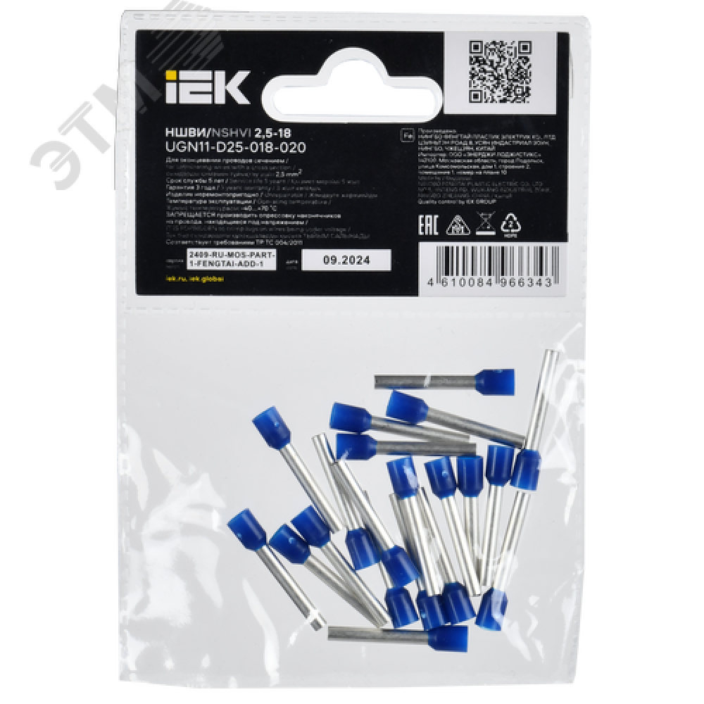 Технические характеристики Наконечник НШВИ 2,5-18 темно-синий (20шт/упак) IEK
