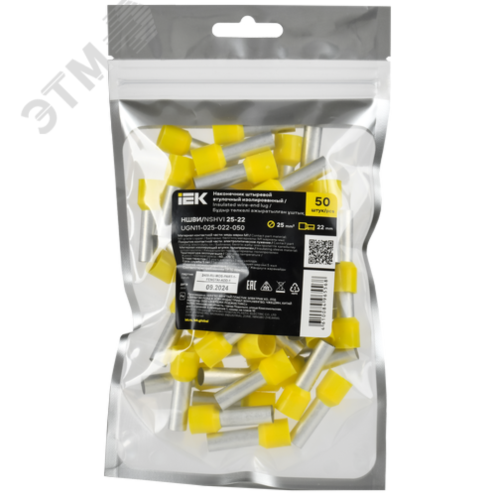 Технические характеристики Наконечник НШВИ 25-22 желтый (50шт/упак) IEK