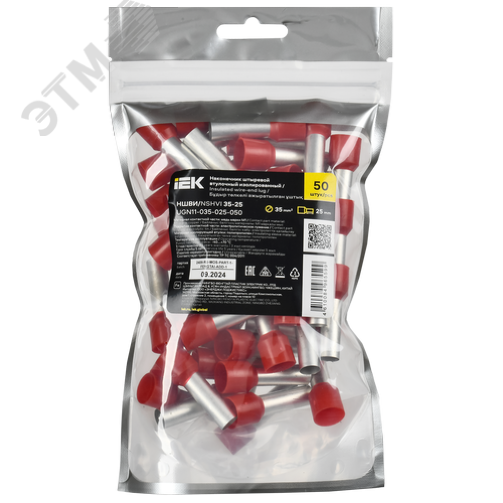 Технические характеристики Наконечник НШВИ 35-25 темно-красный (50шт/упак) IEK