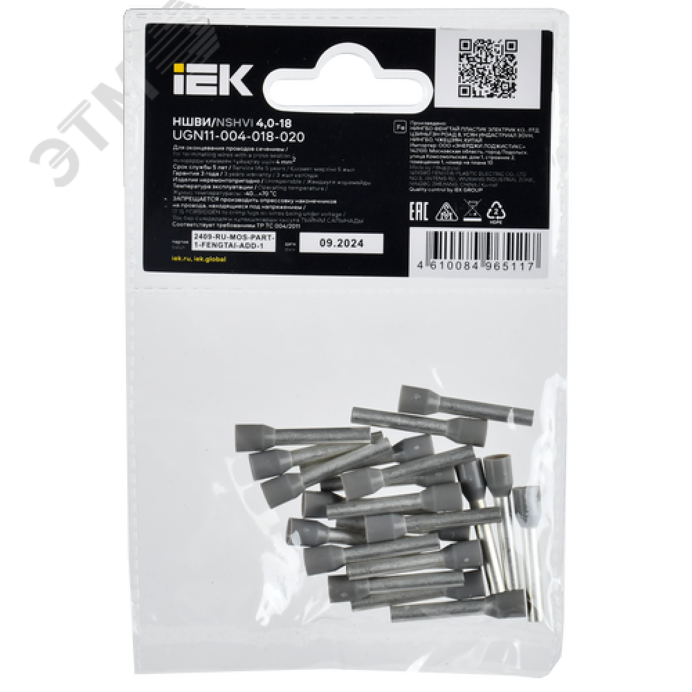 Наконечник НШВИ 4,0-18 серый (20шт/упак) IEK 0 77 ₽