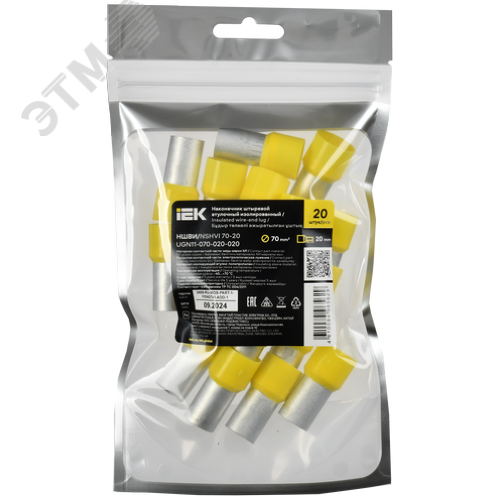 Технические характеристики Наконечник НШВИ 70-20 желтый (20шт/упак) IEK