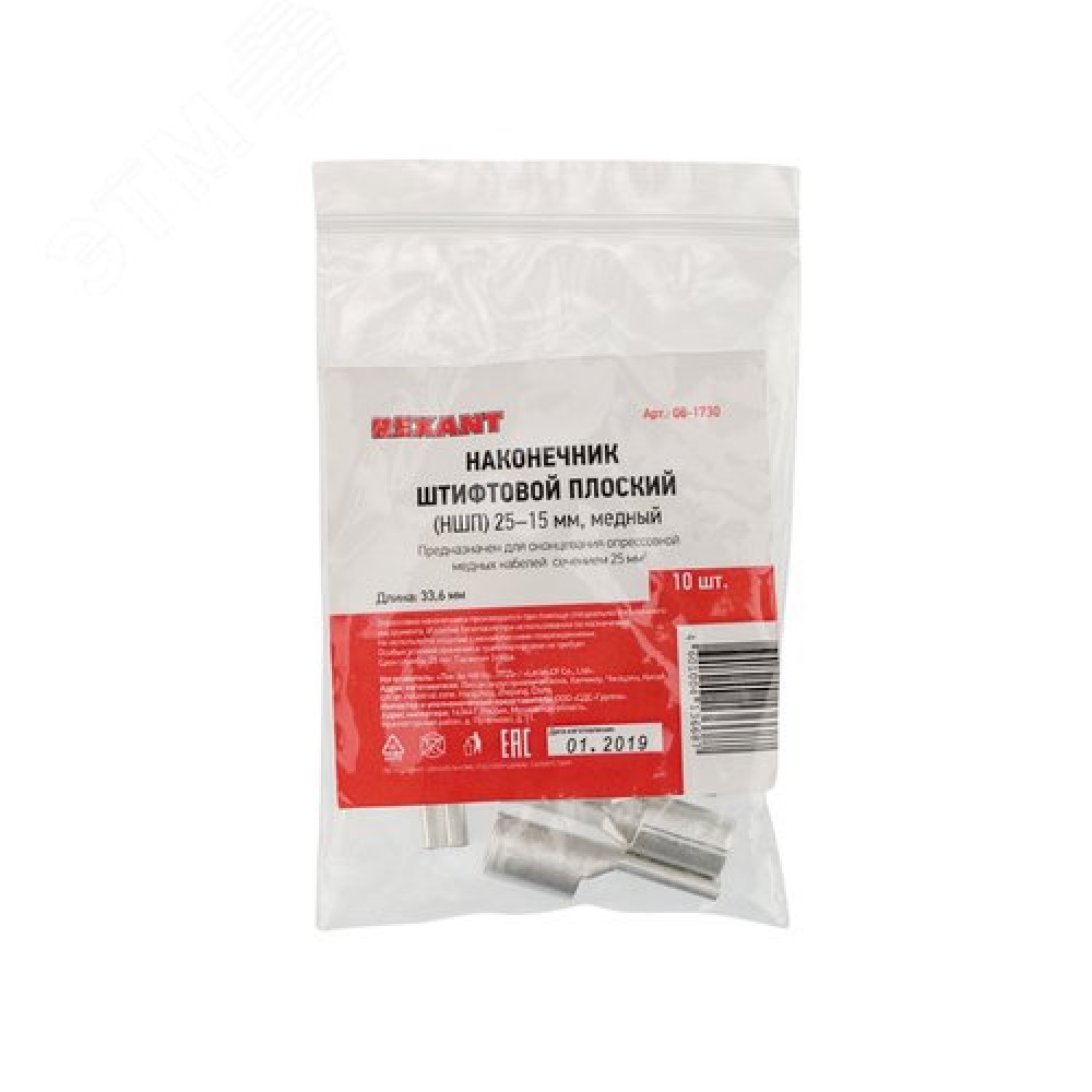 Технические характеристики Наконечник штифтовой плоский кабельный (НШП) 25–15, REXANT