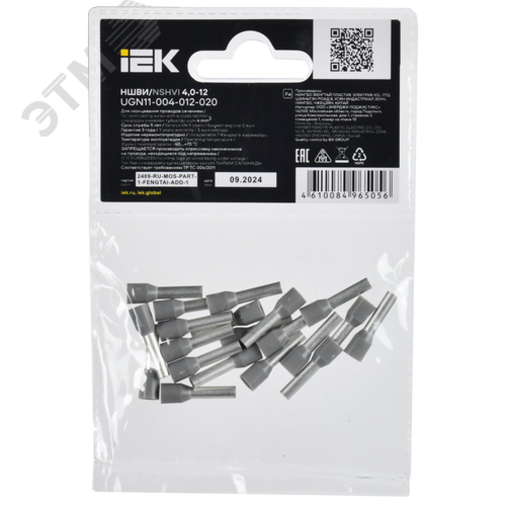 Наконечник НШВИ 4,0-12 серый (20шт/упак) IEK 0 60 ₽