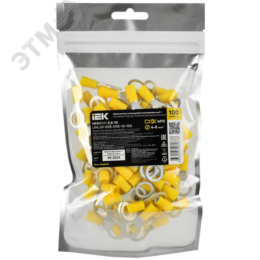 Технические характеристики Наконечник НКИ 5,5-10 кольцо 4-6мм (100шт/упак) IEK