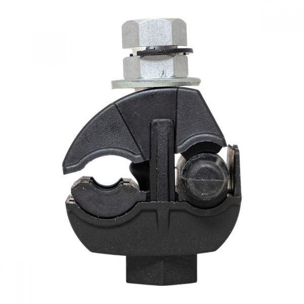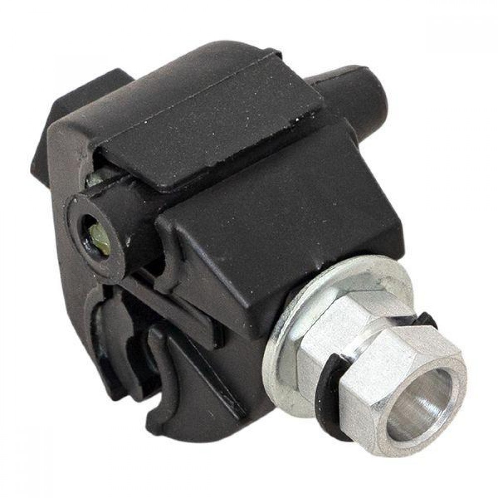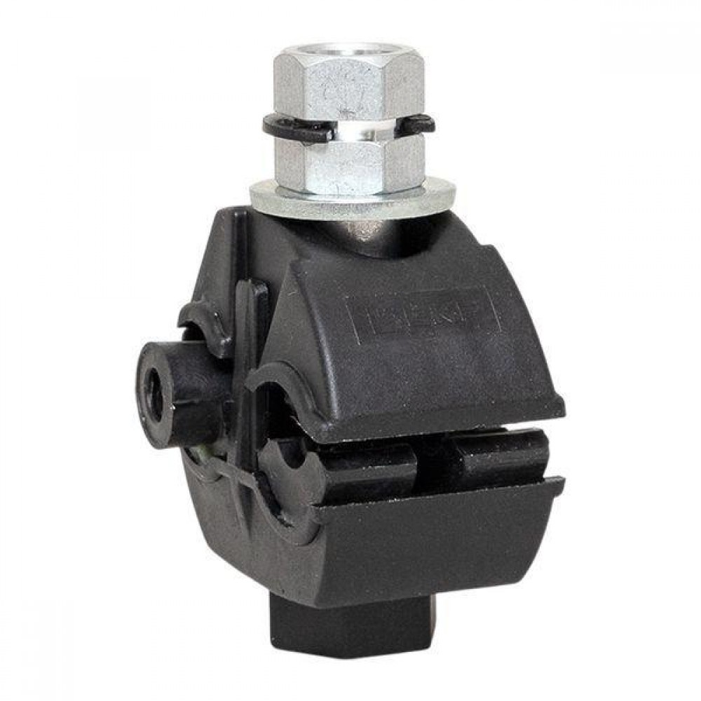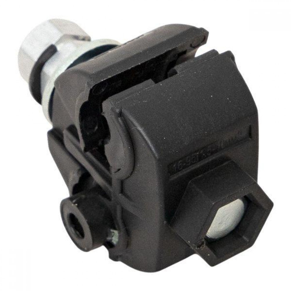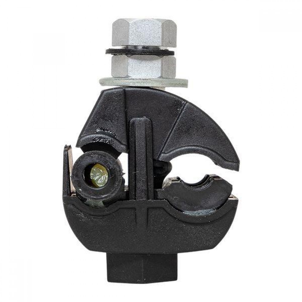 Зажим типа p-1x-95 предназначен для герметичного электрического соединения и ответвления изолированных абонентских проводов, а также проводников освещения от магистрали. Контакт с изолированным проводом обеспечивается прокалыванием изоляции. При достижении момента, необходимого для создания надежного электрического контакта проводов, происходит срыв головки болта. Контактные пластины изготовлены из алюминиевого сплава с лужением. На прокалывающие элементы нанесена контактная смазка. Болт изолирован от контактных деталей зажима. Зажим устойчив к ультрафиолетовому и солнечному излучению, высоким и низким температурам, коррозии и агрессивным атмосферным воздействиям.