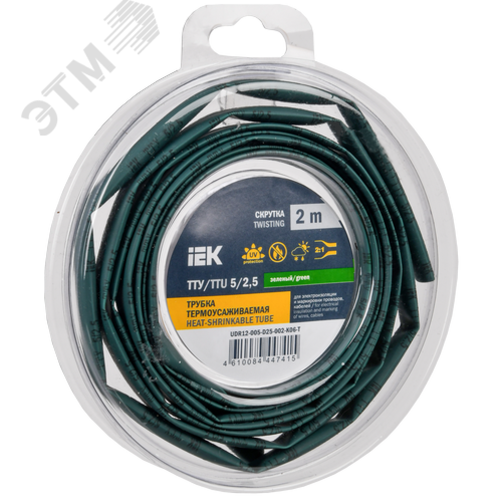 Трубка термоусадочная ТТУ нг-LS 5/2,5 зеленая (2м/упак) IEK