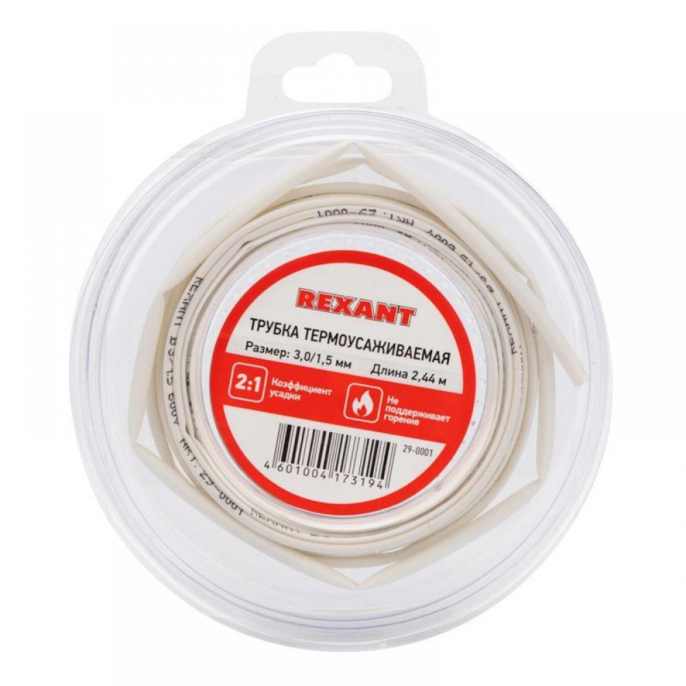 Трубка термоусадочная ТУТ нг 3.0/1.5 бел. ролик 2.44м Rexant 29-0001