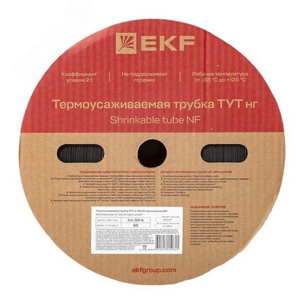 Технические характеристики Трубка термоусаживаемая ТУТ нг 50/25 черная рулон PROxima