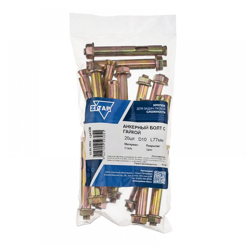 • Болт анкерный с гайкой 10х77 (пакет) (уп.20шт) Zitar 124328