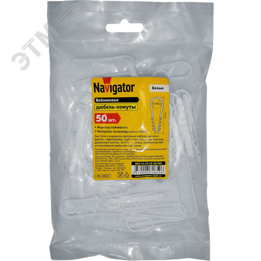 Технические характеристики Дюбель-хомут 11-18мм нейлон белый (50шт)
