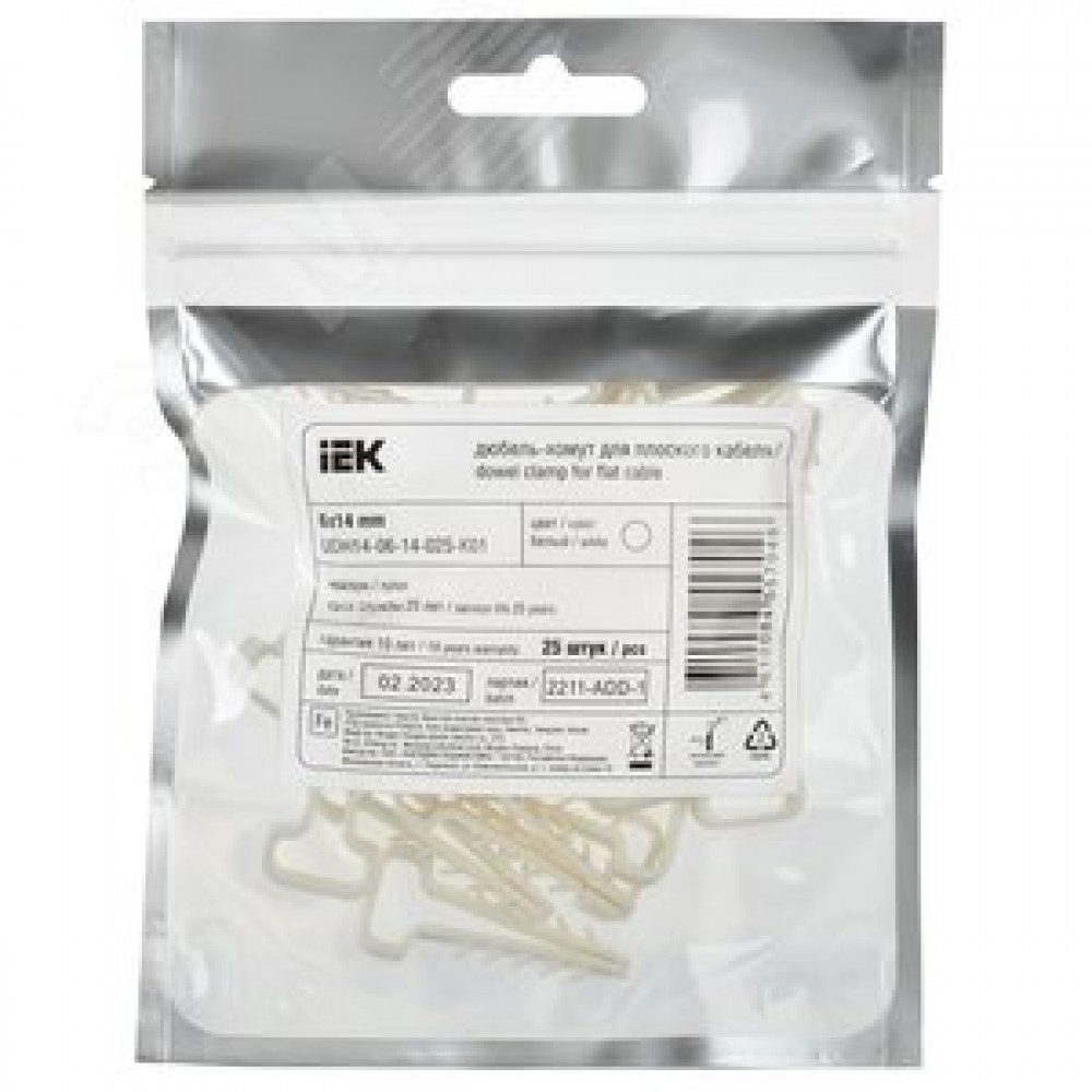 Технические характеристики Дюбель-хомут 6х14мм для плоского кабеля нейлон белый (25шт/упак) IEK