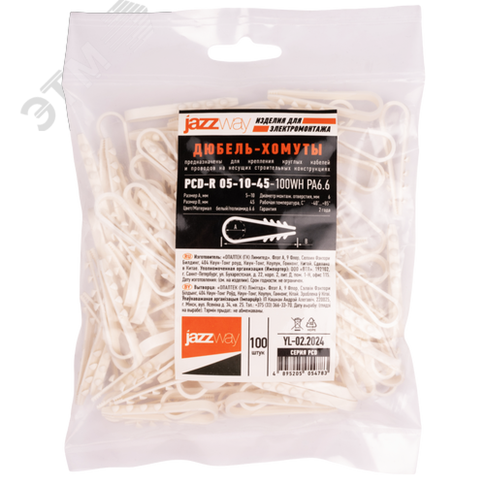 Технические характеристики Дюбель-хомут для круглого кабеля белый 05-11 Jazzway (100 шт/уп)