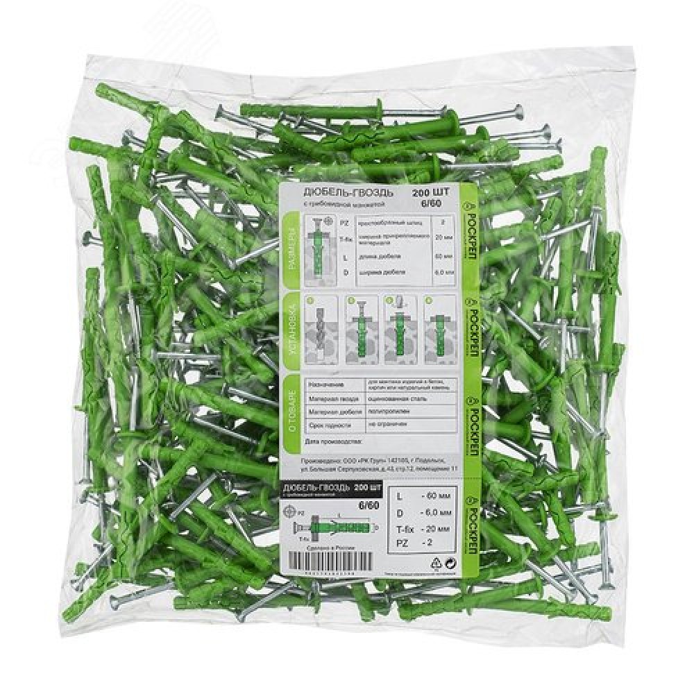 Дюбель-гвоздь 6х60 грибовидная манжета (200 шт)