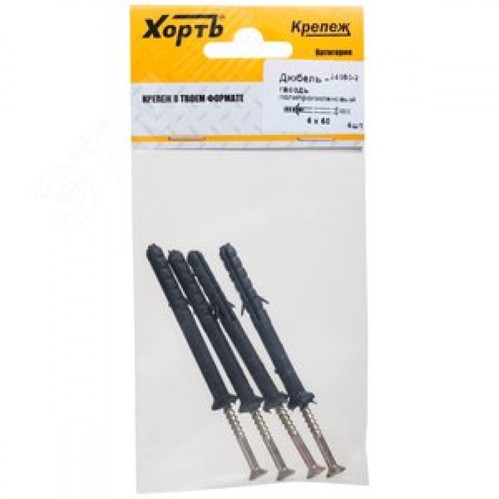 Технические характеристики Дюбель-гвоздь 6х60 потайной бортик, полипропилен (4шт)