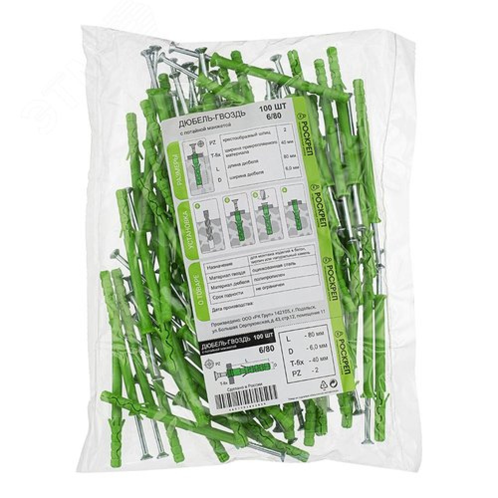 Технические характеристики Дюбель-гвоздь 6х80 потайная манжета (100 шт)