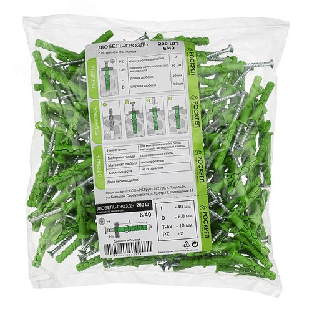 Технические характеристики Дюбель-гвоздь 6х40 потайная манжета (200 шт)