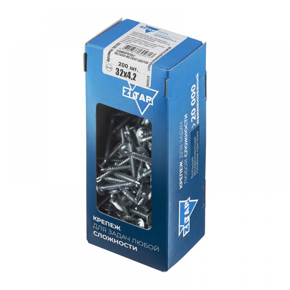 Технические характеристики Саморез усиленный для тонкого метал. листа со сверлом 4.2х32 (коробка) (уп.200шт) Zitar 102152