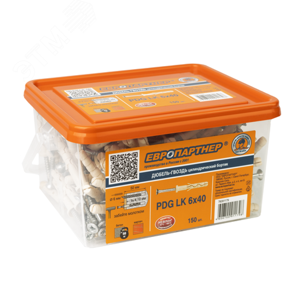 • Дюбель-гвоздь с цилиндрической манжетой PDG LK 6x40 (150шт)