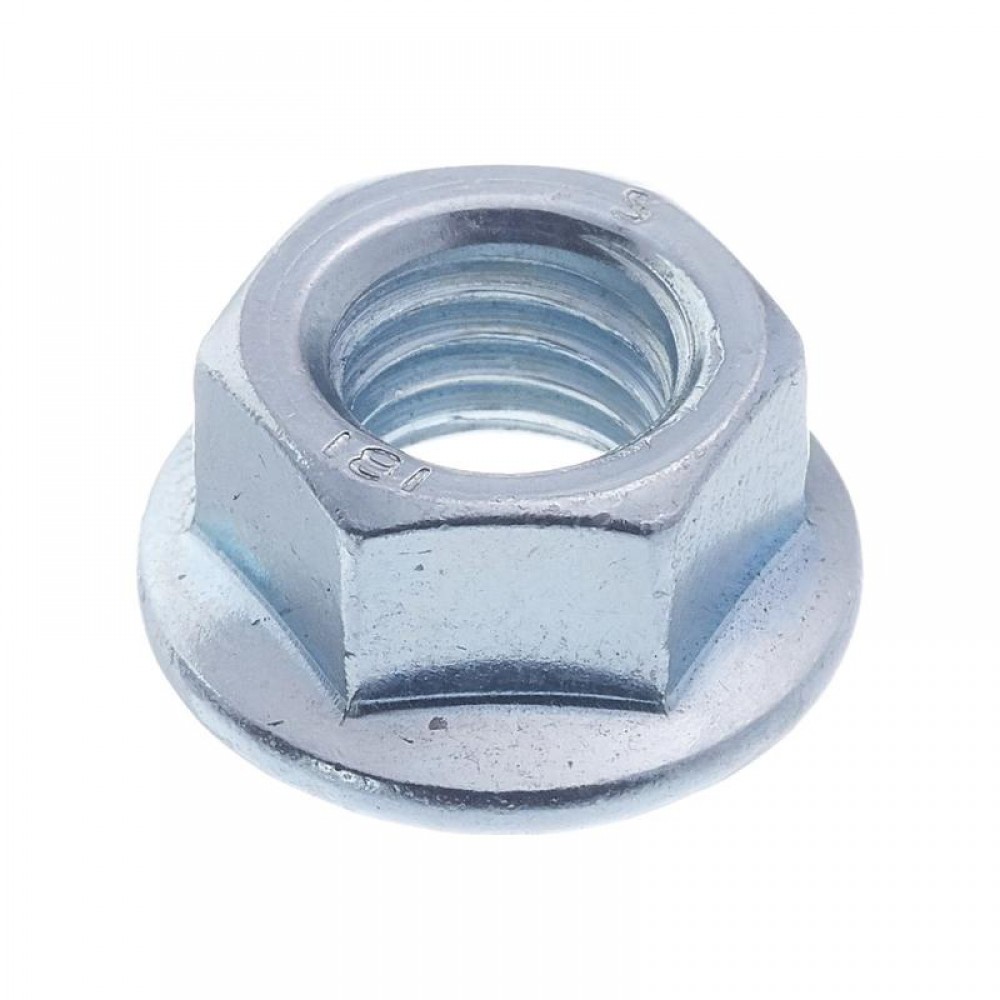 Гайка шестигранная с фланцем и зубьями DIN 6923 широко применяется в машиностроении и строительстве совместно с резьбовыми шпильками и болтами и служит для фиксации деталей машин и конструкций. Особенностью гайки DIN 6923 является наличие фланца, который играет роль шайбы и увеличивает опорную поверхность соединения, поэтому при установке гайки нет необходимости в использовании шайбы. На нижней поверхности фланец изделия может иметь насечку для обеспечения лучшего сцепления с деталью или быть гладким.