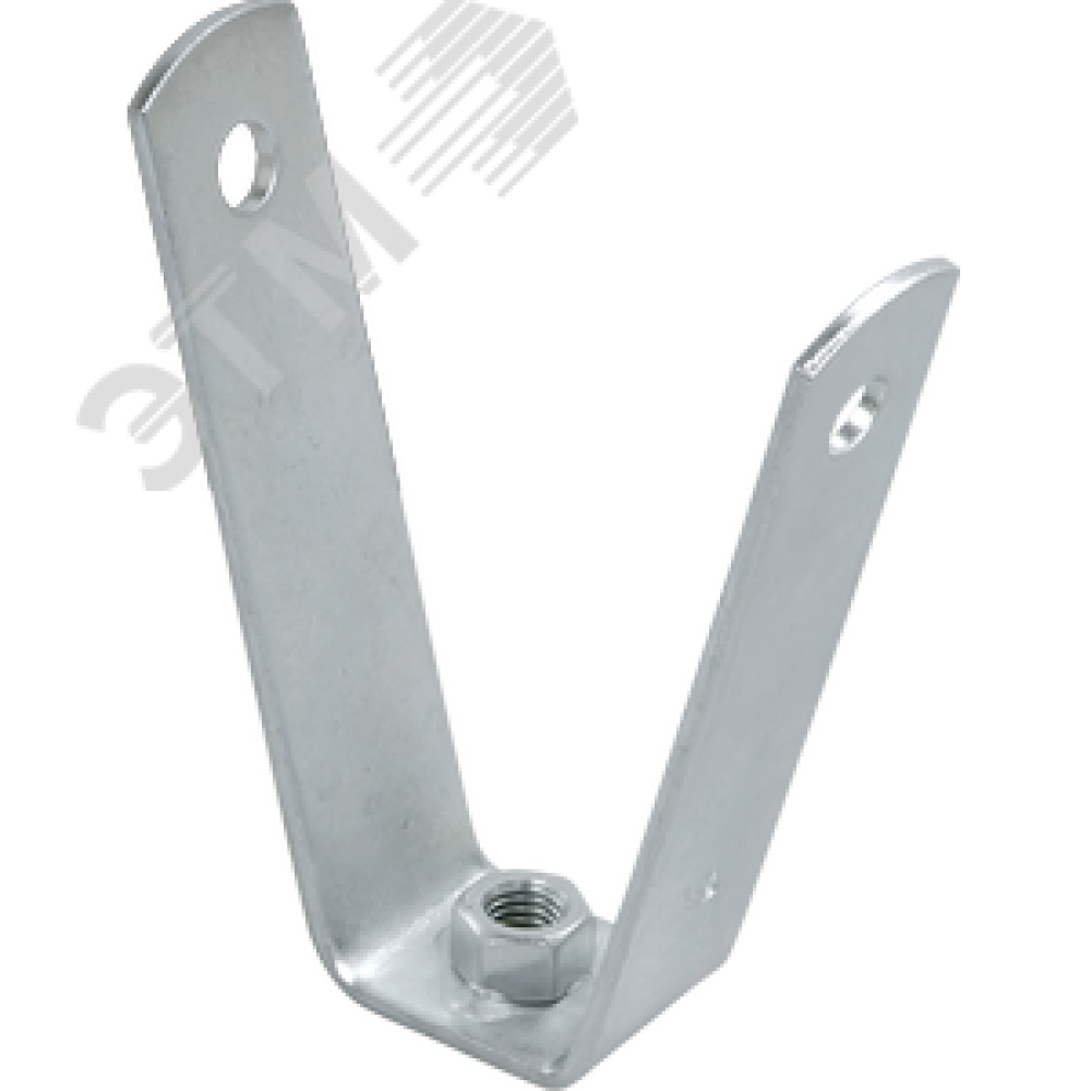 Сфера применения V-образный кронштейн для профнастила, без виброизолятора (прокладки). Предназначен для подвески и крепления к профнастилу, рассчитан на средние нагрузки. Применяется для монтажа воздуховодов и других навесных системам. V-образный кронштейн имеет 2 больших изгиба, между которыми расположена гайка.