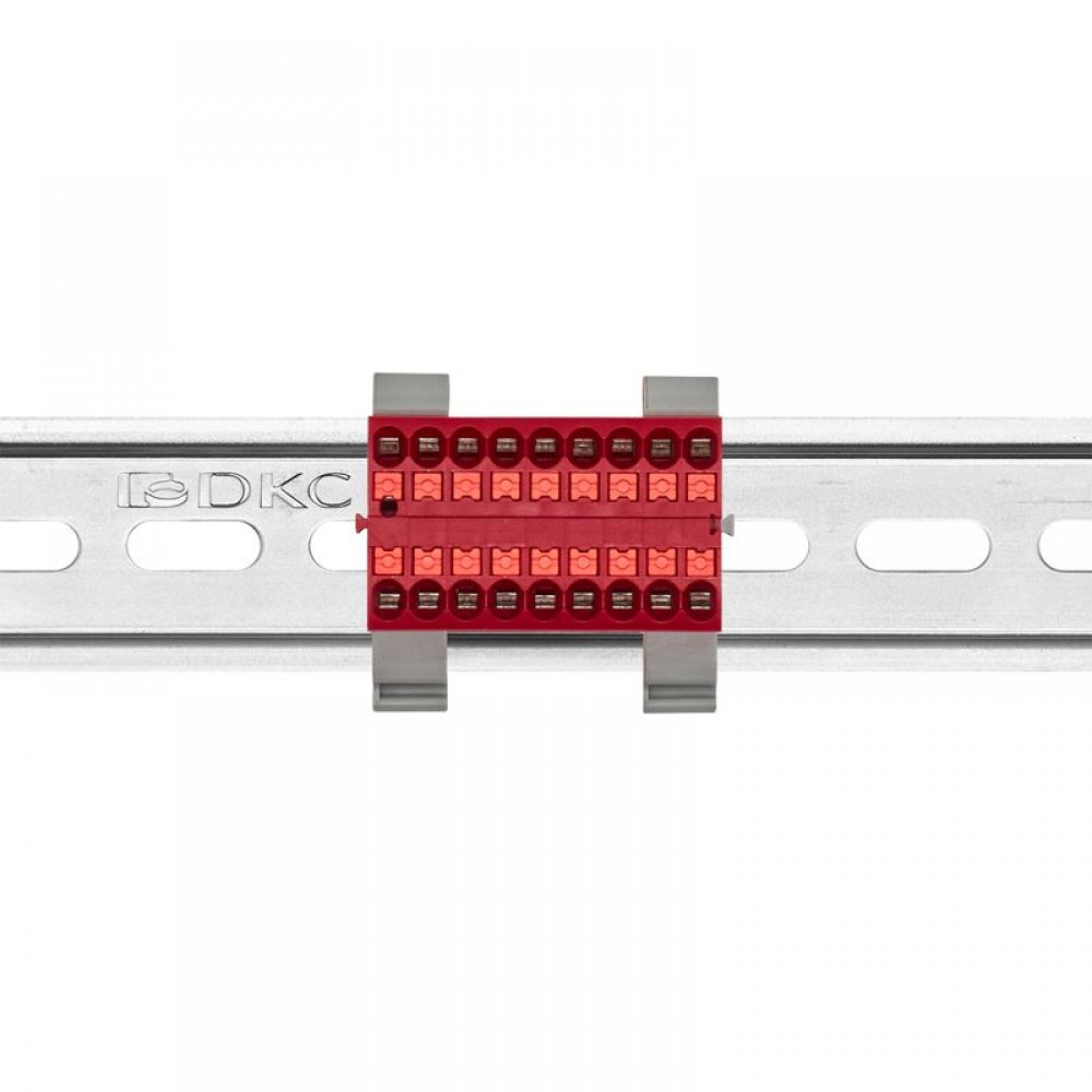 Блок распределительный с горизонт. адаптером на рейку шир. 35мм зажим push-in 18 точек подключения 2.5кв.мм красн. DKC DTP1-018-04SPUR-H